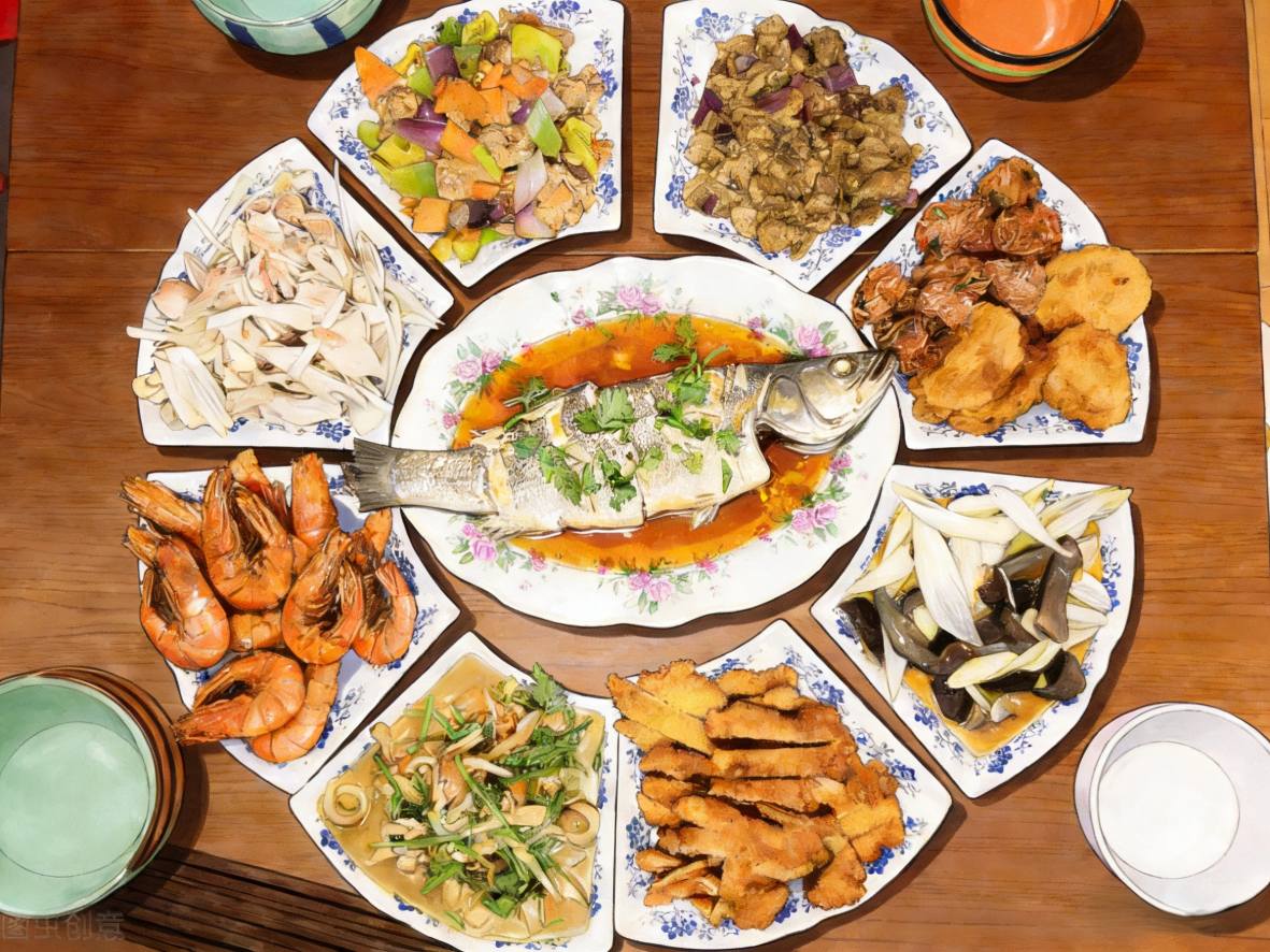 Bovendien is het aantal gerechten meestal even, zoals 6,8 en 10, wat de overtuiging weerspiegelt dat goede dingen in paren komen en harmonie en dubbele zegeningen voor het komende jaar symboliseert.